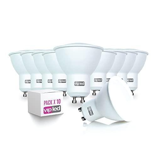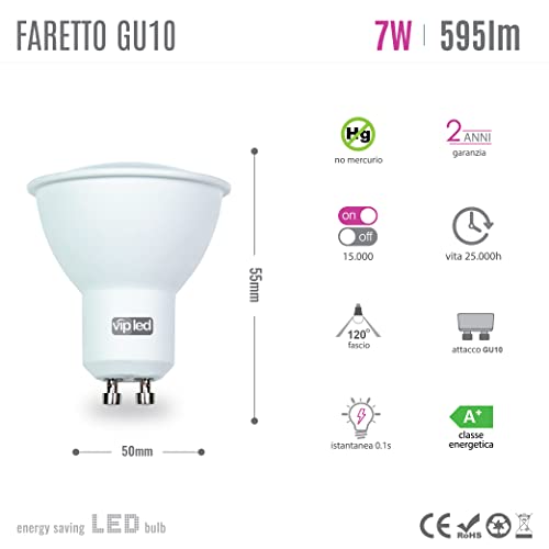 VIPLED - SET di 10 LAMPADINE LED SPOTLIGHT - GU10 - 7W EQUIVALENTI A 50W DELLA LAMPADINA ALOGENA - ø50x55mm - 595 Lumen - LUCE CALDA 3000K