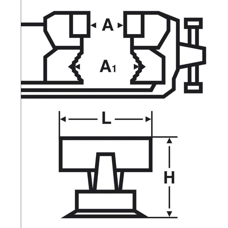 Dettagli: Questa morsa combina tre utensili in uno: una morsa a ganasce parallele, una morsa per tubi e un'incudine. Gabbia in acciaio per una lunga guida. 4 viti di regolazione in ottone per centrare e regolare il gioco della ganascia mobile. A1 135 mm A2 1/2 - 1.1/4 H 125 mm L 105 mm 5,650 kg