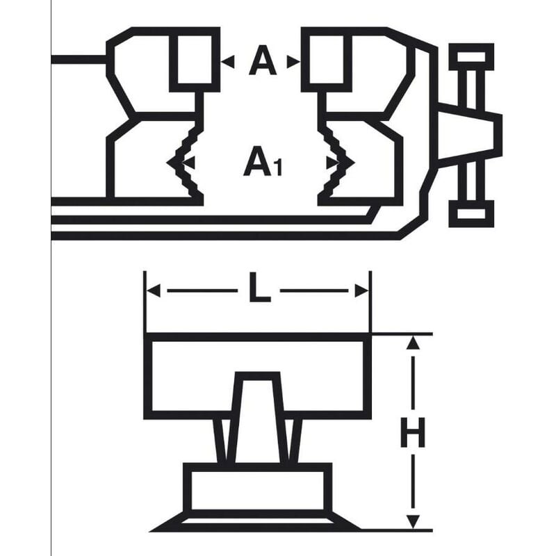 Dettagli: Questa morsa combina tre utensili in uno: una morsa a ganasce parallele, una morsa per tubi e un'incudine. Gabbia in acciaio per una lunga guida. 4 viti di regolazione in ottone per centrare e regolare il gioco della ganascia mobile. A1 155 mm A2 1/2 - 1.1/2 H 140 mm L 125 mm 8,800 kg
