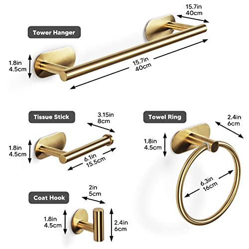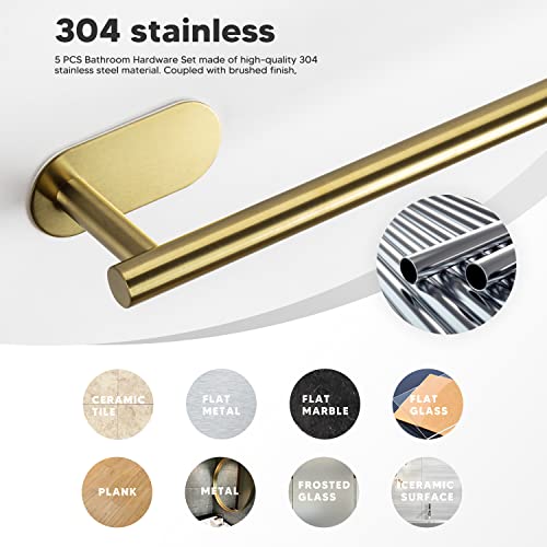 Virklyee Set Porta Asciugamano 5 Pezzi Portasciugamani Porta Carta Igienica Anello Asciugamano 2 Gancio Set da Bagno Autoadesivo in Acciaio Inox Porta Asciugamani Appeso a Parete Bagno Cucina(Oro)