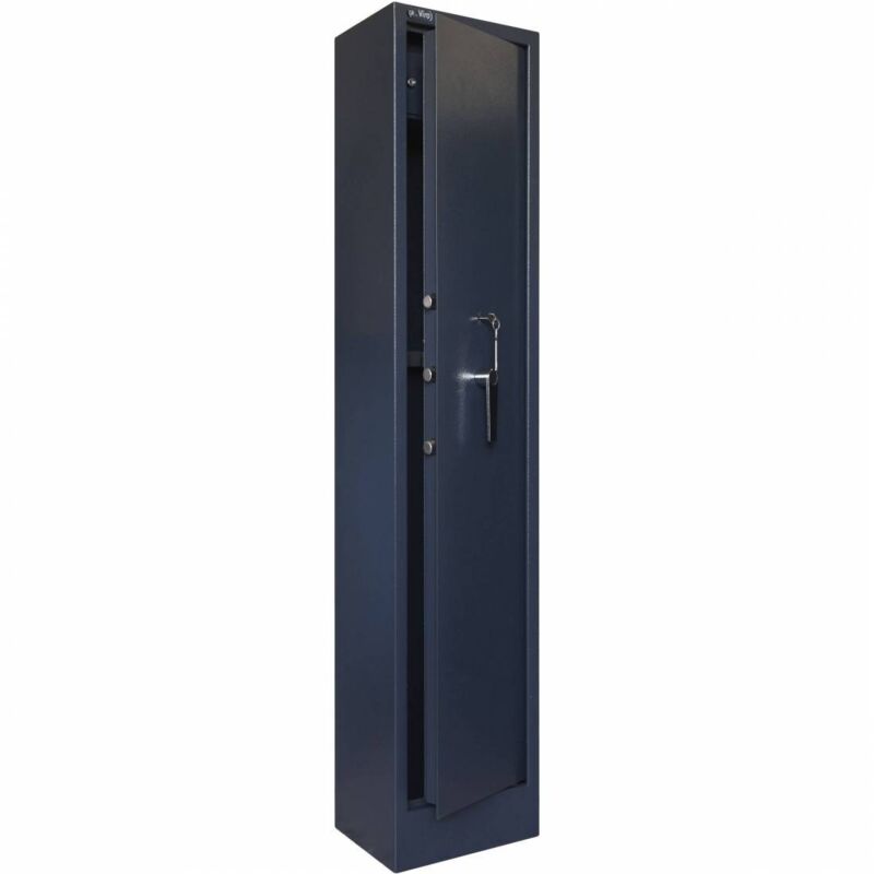 ART. 4491.T a 4-5 posticassa in acciaio spessore 2 mm, sportello in acciaio spessore 3mm, 3 catenacci orizzontali e 2 verticali, con maniglia per movimento catenacci. 2 chiavi doppia mappa, estraibili solo a sportello chiuso.Con tesoretto munito di serratura. Colore blu. 1 appoggia canna a 4 posti + 1 a 5 postiDimensioni cm 26x23x140h--Peso 32 kg