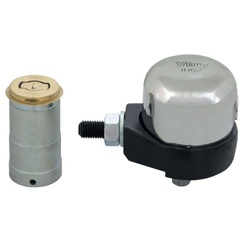 molle pistoncini in acciaio inox. Fornito con: campana di bloccaggio a pavimento in acciaio zincato con tappo “molleggiato integrato” e mostrina fissa in ottone;