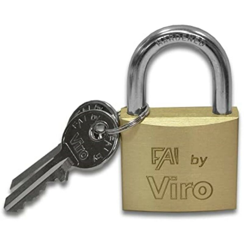 Codice: LF-59253 Marca: VIRO. Corpo in ottone massiccio satinato con spigoli smussati anti-abrasione. Arco in acciaio cementato e temprato per un'altra resistenza al taglio. Chiave estraibile sia a lucchetto aperto che chiuso. 2 chiavi in dotazione in ottone nichelato.