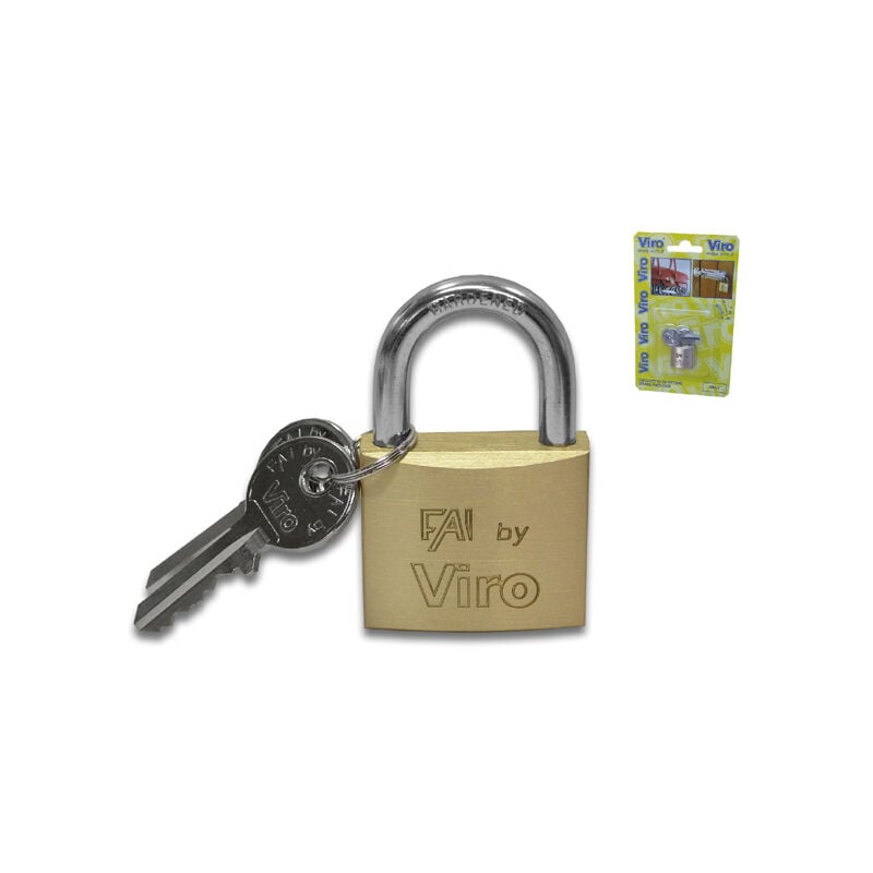 Corpo in ottone, arco in acciaio temperato. Con 2 chiavi in ottone nichelato. Confezione in blister Larghezza 20 mm