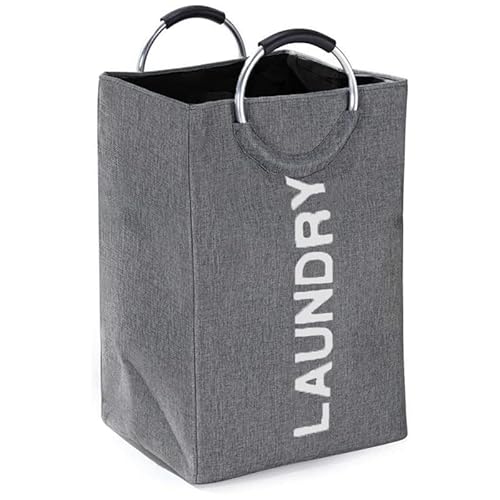 Virsus Borsa Portabiancheria LOAD con maniglie in alluminio 6772, 33x27x50 cm e capacità 44L, cesto tessuto impermeabile per biancheria sporca bagno, lavanderia, Vari Colori (Grigio scritta Bianca)