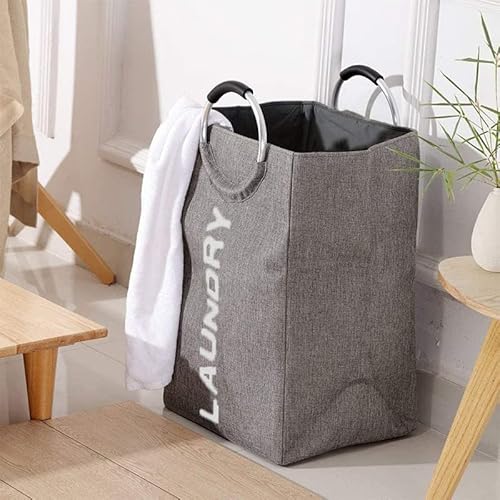 ✅ RICEVERAI - 1 borsa portabiancheria in tessuto con manici di colore Grigio con scritta "LAUNDRY" bianca, misura 33x27x50 cm e capacità 44 Litri, ideale per contenere, trasportare e organizzare la tua biancheria così da evitare il disordine in bagno, lavanderia o camera da letto.