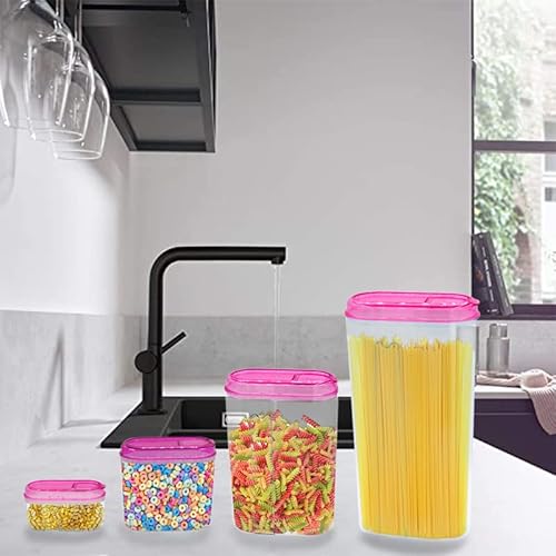 ✅ RICEVERAI - un set composto da 4 contenitori trasparenti con tappo color Viola trasparente, di diverse capacità pari a 0,5L, 1L, 1,5L e 2,35L, con coperchio ermetico salva freschezza per conservare alimenti come cereali, pasta, farina, verdura, riso, caramelle e spezie.