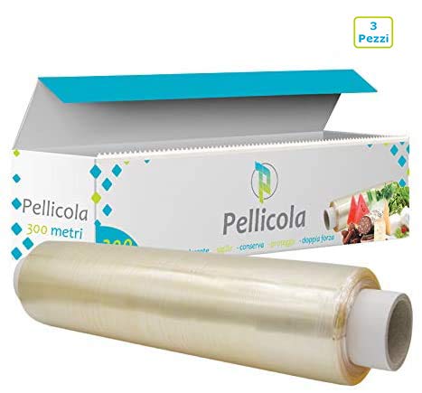 ✅ RICEVERAI - 3 rotoli Pellicola alimentare in Pvc da 300 metri di lunghezza, con larghezza pari a 30 cm, con box incluso. Prodotto "Made in Italy", sinonimo di alta qualità della pellicola che risulta essere resistente e elastica, proteggendo al meglio i tuoi alimenti.