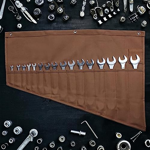 Virtcooy Borsa Arrotolabile per Attrezzi per Chiavi Inglesi - Custodia in Tela per l'organizzazione della Chiave Inglese | Borsa Organizzativa a Cricchetto per Meccanici, Elettricisti, Idraulici