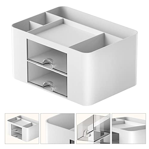Virtcooy Organizer da scrivania con cassetti | Organizzatore di Trucco Scatola di immagazzinaggio stazionaria Desktop | Organizer per Forniture da scrivania a Due Piani, Scatola Multifunzionale
