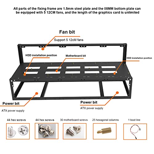 ❉Buon effetto di dissipazione del calore: il nostro telaio per mining rig è progettato da esperti e può essere perfettamente abbinato a schede madri ATX, schede grafiche, ecc. Ha anche 5 slot per ventole di raffreddamento, escluse le ventole, che possono accelerare meglio la convezione e ottenere una migliore dissipazione del calore.