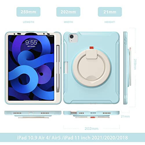 Visaccy Custodia per iPad Air 10.9 (5.Gen. 2022.4 Gen. 2020) / iPad Pro 11 (2021/2020/2018), Custodia sottile in silicone TPU antiurto con supporto girevole, portamatite, ghiaccio