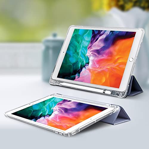 Visaccy Custodia per iPad da 10,2 pollici, iPad 9/8/7 generazione con portamatite, super leggera traslucida, custodia protettiva per auto sleep/wake up per iPad 10,2 pollici 2021/2020/2019, lavanda