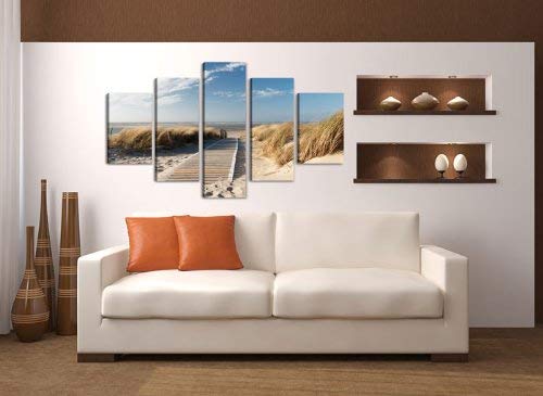 Visario 5517 - Immagini su Tela, 160 x 80 cm, Motivo Mar Baltico e Mare del Nord, 5 Pezzi, Colore: Natura