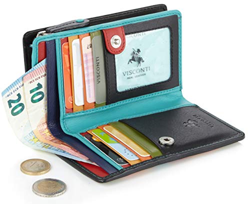 VISCONTI ® Portafoglio Donna Vera Pelle con protezione RFID Porta Carte di Credito con Portamonete Borsellino Portafogli Porta Banconote - RIO (Multicolore)