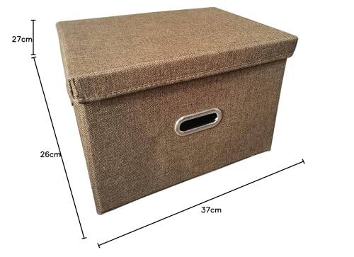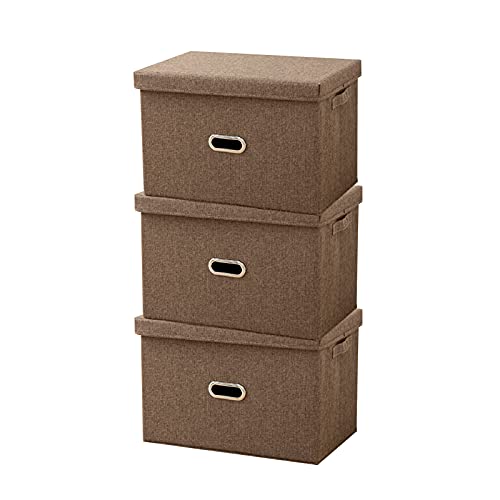Viseng 3 Pacchi Scatola Di Immagazzinaggio Pieghevole,Scatola Porta Oggetti Con Coperchio Con Maniglia Scatole Per Armadio,Cubo Di Stoccaggio In Tessuto(M-Marrone)