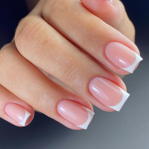 Vishine - Set di smalti gel semipermanente e base top coat per manicure francese gel UV/LED, soak off, nail art, french, bianco, rosato, 4 pezzi, 8 ml, kit