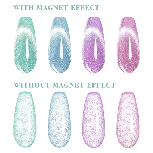 Vishine Smalto Gel Semipermanente Magnetico, Confezione da 4 Smalto per Unghie Cat Eye Glitter Olografico Cat Eye UV Semi-Permanente Glitter Lucido Auroras Snowlight Cat Eye Nail Art 8ml