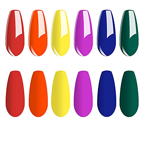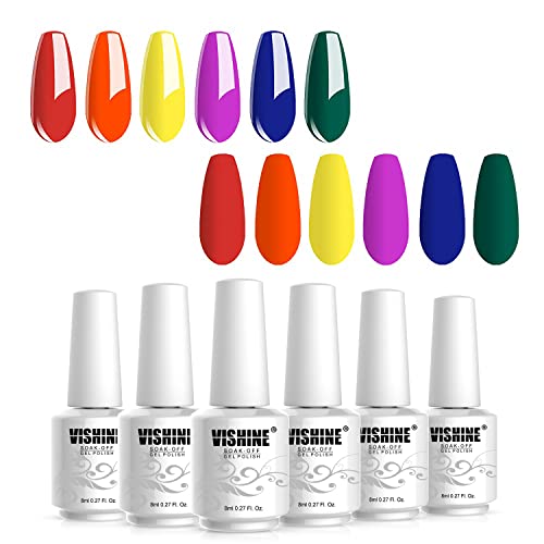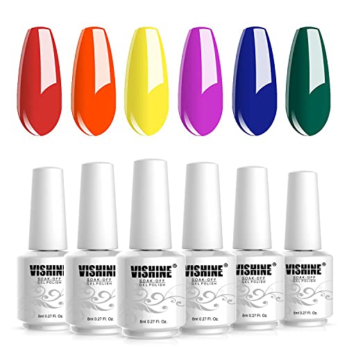 Vishine Smalto Semipermanente Gel UV LED Smalto Rosso Brillante Arancio Viola Blu Verde per Gel Estivo Soak Off Manicure Nail Art Kit 6 Colori Set