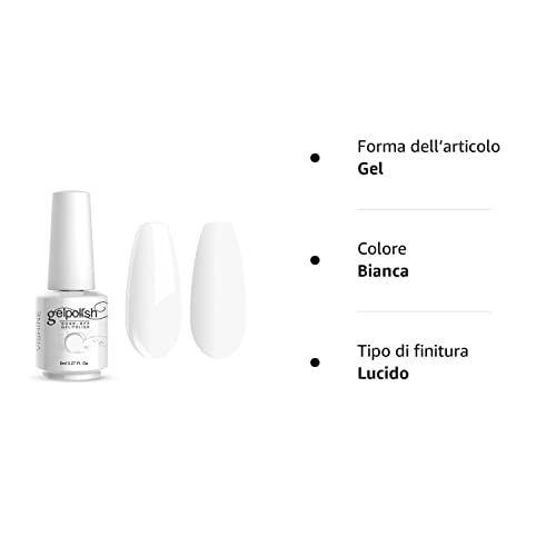 Vishine Smalto Semipermente per Unghie in Gel UV LED Smalti per Unghie Bianca Colori per Soak Off Manicure e Pedicure 8ml 1pzs - Bianca #020
