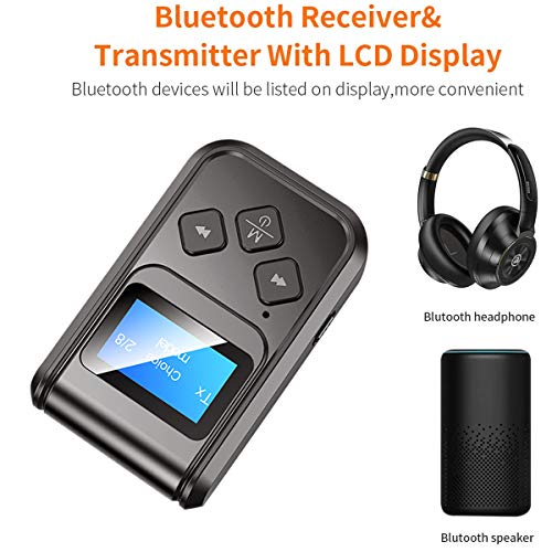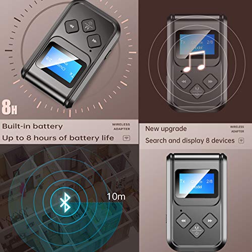 Visible Bluetooth Transmitter and Receiver, 2-IN-1 Wireless Audio Transmitter Receiver with Display Screen, Stereo Audio Aux Bluetooth Dongle Transmitter for TV PC iPod Car