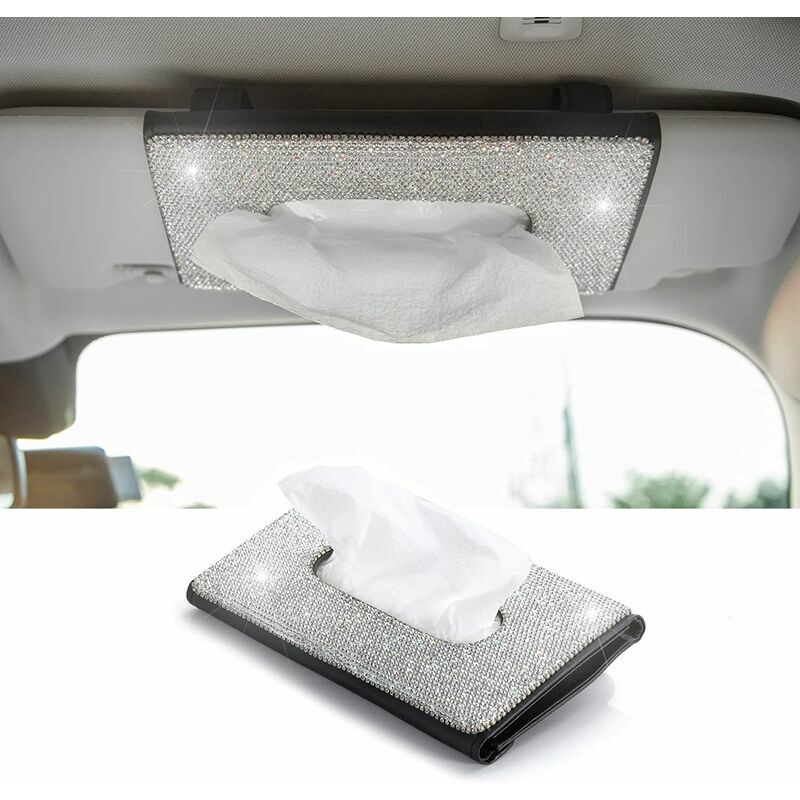 ALTA QUALITÀ: Realizzata in resistente pelle PU con cristalli scintillanti, lussuosa ed elegante. Puoi mettere il parasole all'interno dell'auto per risparmiare molto spazio per la tua auto e rendere la tua auto più pulita. Ampiamente compatibile: dimensioni: 23x13 cm. Si adatta alla maggior parte delle auto e può essere fissato alle alette parasole, ai sedili posteriori e alle portiere dell'auto. FACILE DA INSTALLARE E UTILIZZARE: con due clip sul retro del porta fazzoletti per auto, puoi appenderlo l'aletta parasole dell'auto, nella tasca dello schienale e sulla portiera, oppure posizionarla sul cruscotto. Funzionamento semplice, installazione rapida, molto conveniente. Rasatura a mani libere: artigianato diamantato, non ti farà male alle mani. Decora perfettamente la tua auto. Un facile accesso alla carta aiuta i conducenti a guidare in sicurezza e senza distrazioni. GRANDE REGALO: l'installazione di questa scatola di fazzoletti non è solo comoda in macchina, ma anche bella nella