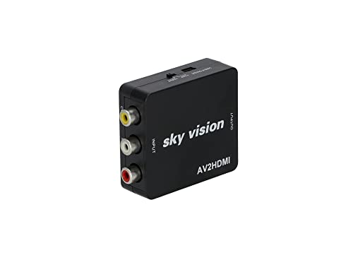 Sky Vision Adattatore RCA a HDMI, AV/RCA/FBAS a HDMI, convertitore audio video, 1080P, PS2, Wii N64, supporta PAL/NTSC, Plug and Play, nero