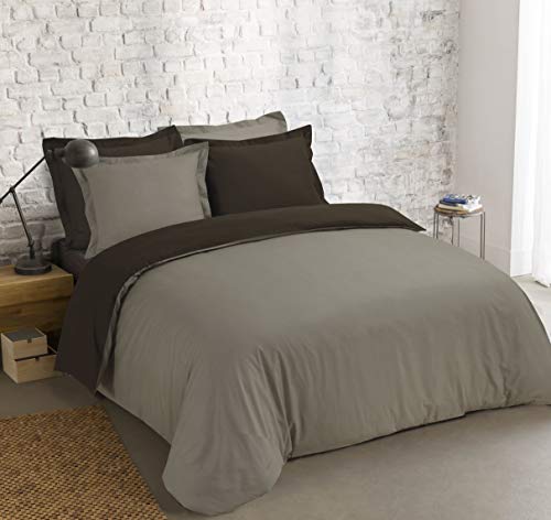 Vision - Copripiumino reversibile, 100% cotone, Chocolat/Taupe, 200 x 200 cm