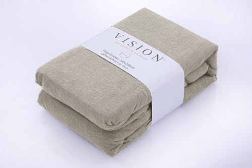 VISION Vision - Lenzuolo con angoli in flanella, 180 x 200 cm, colore: beige - 100% cotone flanella - morbido e caldo - berretto da 30 cm