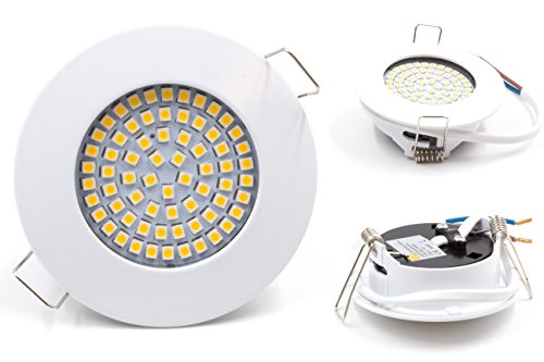 Vislux Faretto da incasso a LED, 230 V, 58 mm, 70 mm, faretto da incasso per bagno, a risparmio energetico, luce bianca calda, 3,5 W, 330 lm, 3000 K, (set da 4) (bianco)
