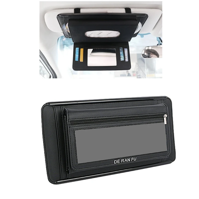 Car Visor Tissue Bag Portable Leather Tissue Box Creative Vehicle Tissue Box for storage Card Pen