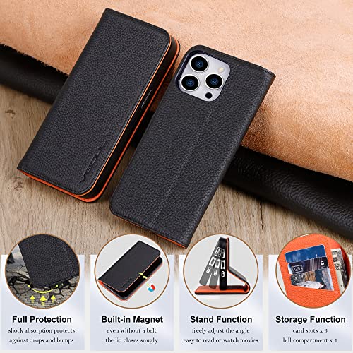 VISOUL Custodia per Apple iPhone 14 Pro, Cover Vera Pelle Portafoglio [Protezione RFID] [100% Vera Pelle] Cover TPU Antiurto [Chiusura Magnetica] Flip Caso Compatibile iPhone 14 Pro (6,1)
