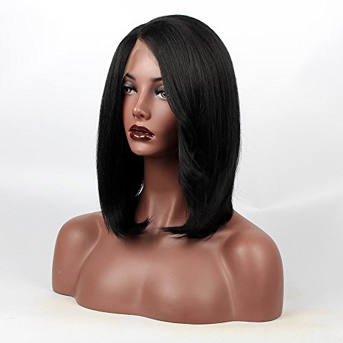 Vita Diaries nessun groviglio Yaki Short Bob dritto ad alta densità 10% capelli umani + 90% fibra resistente al calore Glueless ampio spazio parte anteriore del merletto parrucca sintetica per ragazze e donne natura nero 35,6 cm