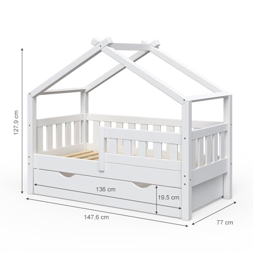 DIMENSIONI: Il letto bambini è adatto per un materasso di 70x140 cm e ha un'altezza di 127,9 cm. Tutte le dimensioni dettagliate sono indicate nelle foto.