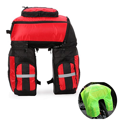 Vitalite - Borsa posteriore tripla da sella per bicicletta, ciclismo, 70 l, multiuso, con copertura antipioggia, Red