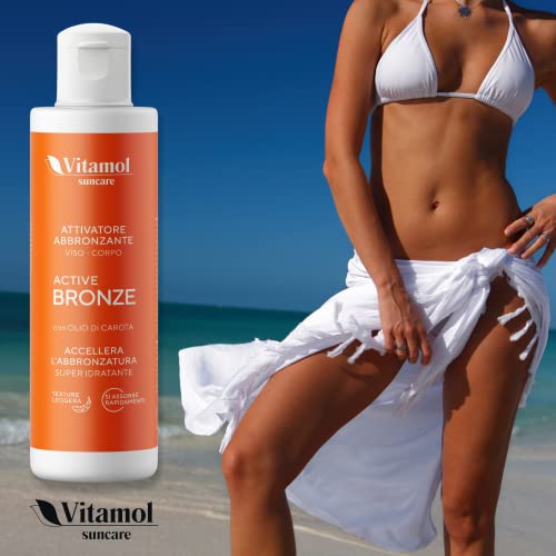 Vitamol Active Bronze Attivatore abbronzante viso e corpo Idratante Protettivo dai raggi UVA e UVB Accelera l'abbronzatura con Olio di Carota