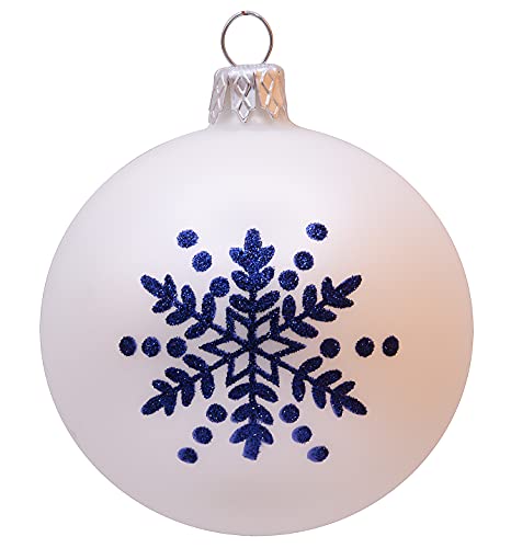 VITBIS Palline di Natale in vetro, 6 pezzi, blu/bianco, diametro 8 cm, dipinte a mano