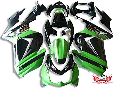 VITCIK (Kit Carenatura Compatibile con EX250R Ninja 250 EX-250R ZX250 2008 2009 2010 2011 2012) stampaggio a iniezione per moto plastica in ABS telaio(Nero & Verde) A038