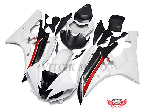 VITCIK (Kit Carenatura Compatibile con YZF-600 R6 2006 2007 YZF 600 R6 06 07) stampaggio a iniezione per moto plastica in ABS telaio(Bianco & Nero) A093
