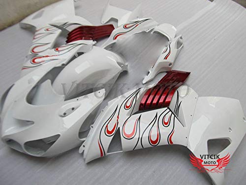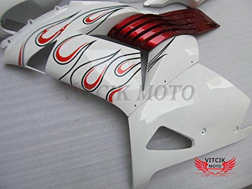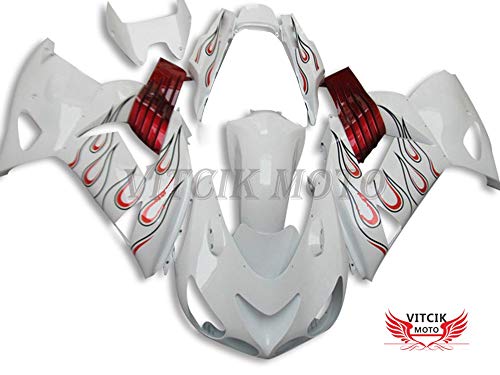 VITCIK (Kit Carenatura Compatibile con ZX14R ZX-14R ZZ-R1400 2006 2007 2008 2009 2010 2011) stampaggio a iniezione per moto plastica in ABS telaio(Bianco & Rosso) A031