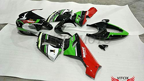 VITCIK (Kit Carenatura Compatibile con ZX6R ZX-6R Ninja 636 2005 2006 ZX6R Ninja 636 05 06) stampaggio a iniezione per moto plastica in ABS telaio(Nero & Verde) A076