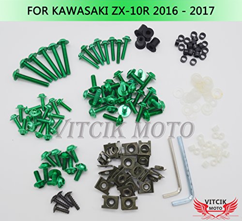 VITCIK Kit completo di carenatura viti bulloni per ZX-10R ZX10R Ninja 2016 2017 16 17 Serraggio per moto, clip in alluminio CNC (Verde)
