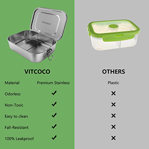 VITCOCO Bento Box in Acciaio Inossidabile Premium,Scatole Lunch Box per Adulti e Bambini,Lunchbox 800ml con divisorio e Posate Contenitore per Il Pranzo a Prova di Perdite Lavabile in lavastoviglie