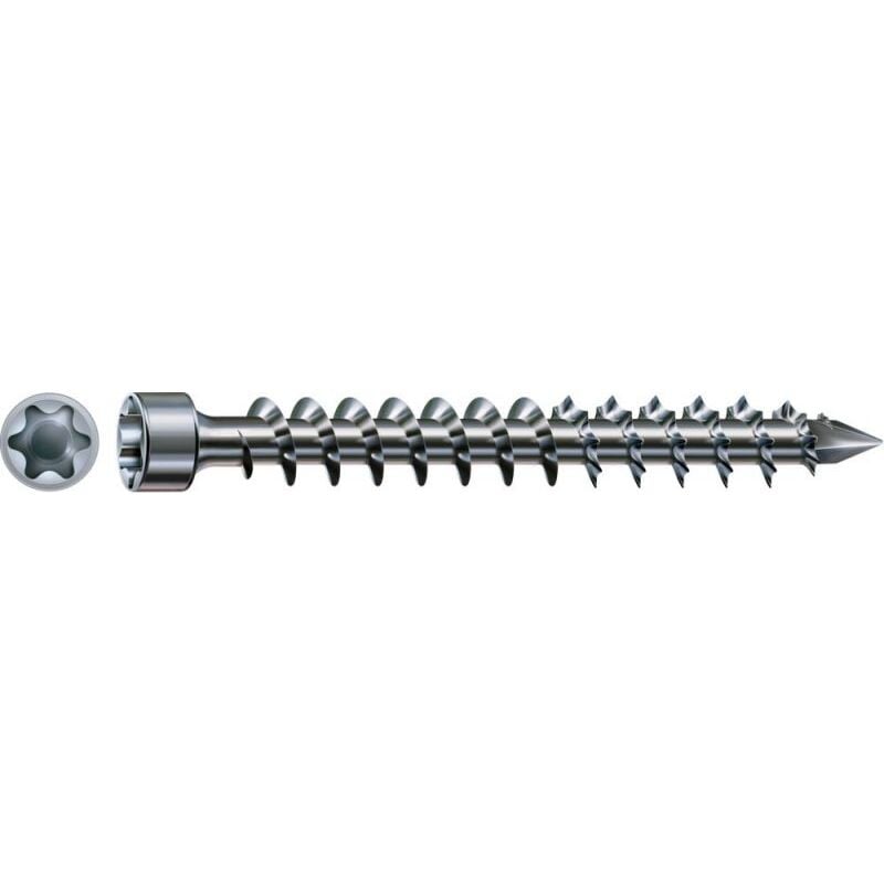 SPAX Vite per la costruzione in legno WIROX, 8 x 240 mm, 50 Stk., Filetto totale, Testa cilindrica, T-STAR plus, Punta CUT, WIROX, Diametro Ø 8 mm - 1221010802405 Numero dell'articolo: 1221010802405EAN: 4003530246456 Dimensione della lama: T40 Diametro della testa: 10 mm Lunghezza totale: 240 mm Coppia di avvitamento sensibilmente ridotta e diminuzione dell'effetto di spaccaturaImpiego: costruzioni in legno, rinforzo della sezione trasversale e dei collegamenti di elementi in legnoLavorazione rapida e sicura con poco sforzo (più avvitature prima di dover ricaricare la batteria) Descrizione La particolare impronta l'attacco è una cosiddetta testa svasata a cava esalobata. Rispetto ai tipi di attacchi meno precisi come Phillips o intaglio a croce, la superficie di attacco della nostra T-STAR plus è molto più grande e i bit T-STAR si innestano nella testa della vite sempre in modo ottimale. La massima e precisa trasmissione della forza dall'avvitatore alla vite che ne risulta tramite