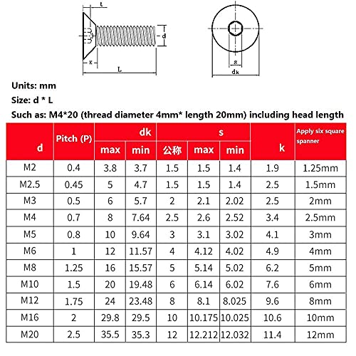Le specifiche consistono in D * L, come ad esempio: M5 * 10 (diametro del filo 5mm "lunghezza 10mm) contiene spessore della testa