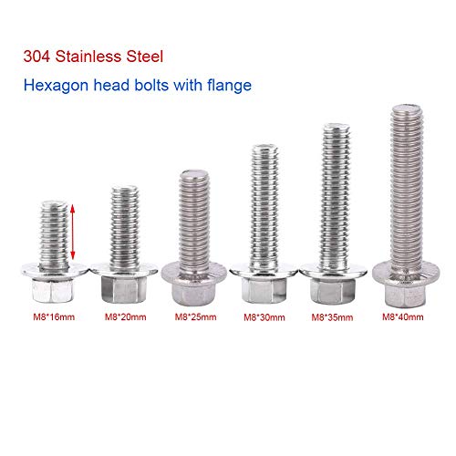 Vite all'ingrosso 10pcs M8 in acciaio inossidabile Ss304 Viti flangiate a testa esagonale Bulloni a rondella a testa cilindrica(M8*20)