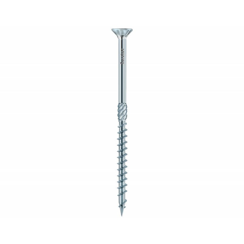 Paneltwistec AG. Testa svasata - Zincata blu - Testa svasata con nervature di fresatura e trasmissione TX - Nervature di fresatura sopra la filettatura - La punta della vite AG riduce la coppia di avvitamento e minimizza l'effetto di spaccatura durante l'avvitamento - Viti da costruzione in legno per il collegamento di parti aggiuntive in acciaio e parti in legno massiccio. Legno lamellare incollato. Legname impiallacciato laminato. componenti in legno e pannelli a base di legno incollati in modo simile.