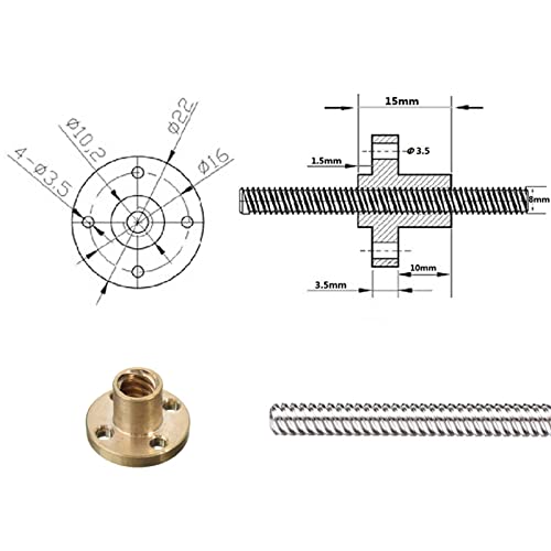 Vite di piombo T8 per stampante 3D lunga 300 mm (confezione da 2) 8 mm trapezoidale con dado T8