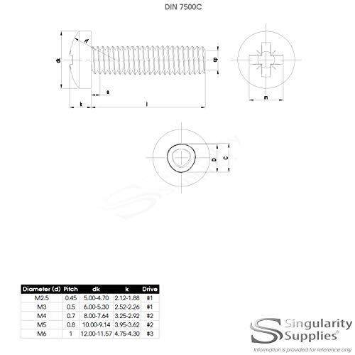 Vite di rotolamento M2.5 (2,5 mm x 5 mm) Pozi Pan Filettatura - Acciaio Inox (A2) (confezione da 20)