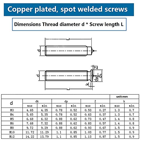 Vite di saldatura in rame placcatura, vite a spot per saldatura, M3M4M5M6M8M10, chiodo di piantatura, perno di saldatura lunga, vite-M6 * 25 [100pcs]